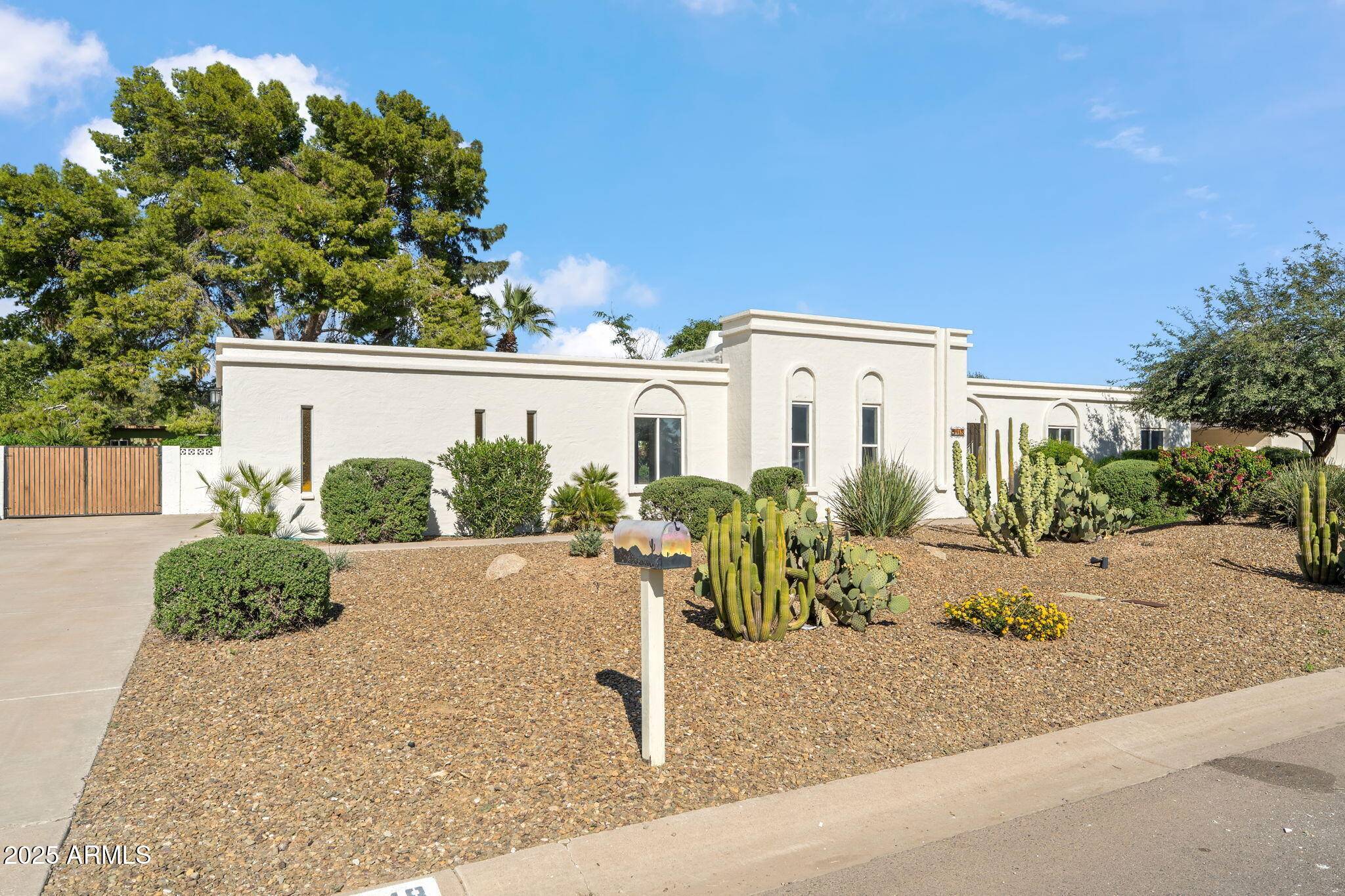 Welcome to this beautifully updated 4b/2b Scottsdale ranch home on a spacious, private lot with a sparkling pool and timeless charm. Nestled in the highly sought after magic zip code, this quiet, established neighborhood features mature trees, mountain views, NO HOA, and RV gate access. This single-level property blends modern upgrades with warm, character-filled details and includes major improvements such as a newer (2020) roof with transferable warranty, a brand-new (2024) HVAC unit, and a brand-new (2025) water heater. Durable concrete block construction helps keep energy costs down year-round. Inside, you'll find bright, open living spaces highlighted by two separate gas fireplaces with their own chimneys — a rare feature. One being a floor-to-ceiling stone fireplace (currently set up for natural wood burning) while the other is set up with beautiful artificial logs, giving you flexible ambiance options. Wood-beam accents and abundant natural light further enhance the home's welcoming character. The remodeled kitchen features rich cabinetry, slab granite counters, stainless steel appliances, pendant lighting, and an expansive peninsula with bar seating ideal for entertaining or casual dining. Multiple living areas provide flexibility for dining, relaxing, or creating an office or media space. The primary suite includes direct access to the backyard along with an updated bath featuring dual vanities and generous storage. Step outside to your private retreat complete with a gorgeous pool, lush grass, mature landscaping, a storage shed, a firepit, and a large covered patio. Whether hosting friends or enjoying quiet evenings, the backyard offers room to unwind and enjoy Arizona living at its best. Located minutes from Kierland, Paradise Valley, top-rated schools, and convenient amenities, this home offers the ideal blend of comfort, character, and location.